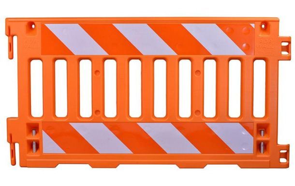 ADA Wall traffic barricades can be quickly set in place using the toe of your work boot. Simply activate the galvanized steel support legs at the base of the barrier, maneuver them into position, and lock them into place. Flexible interlocking connection points let crews rotate barricade sections at 120 degrees for simple custom perimeters. Stable on all terrain types.