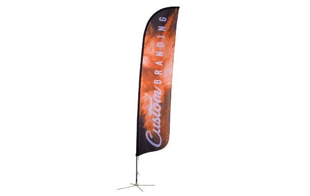 Our tallest feather flag commands attention in wide-open areas. Its height makes your branding visible from long distances. |