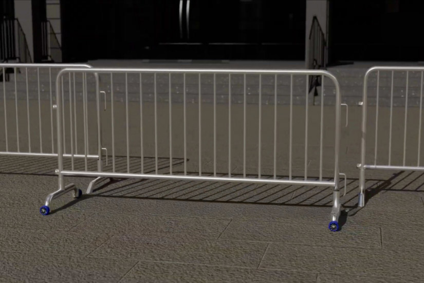 Made of industrial-grade galvanized steel, the metal barricade stand resists rust and corrosion. |