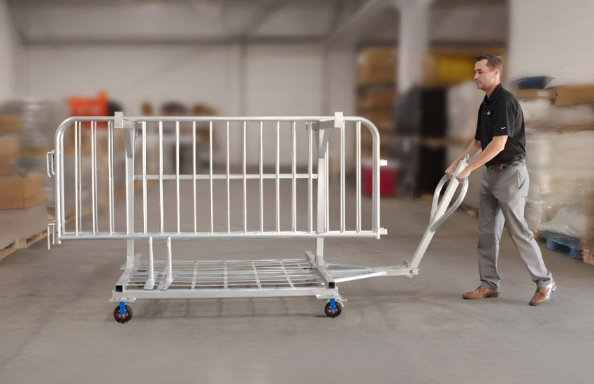 Make the process of deploying, changing, or uninstalling your barricade lines even simpler with a steel CrowdGuard barrier cart. Equipped with low-friction wheels and a newly redesigned handlebar, this cart lets you pick up and easily transport up to 30 metal barricade panels at one time. Perfect for keeping big jobs approachable. Add to cart now!