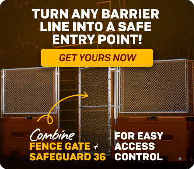 A: SONCO gates are designed to work with standard chain-link fence panels and can also be used with water barricades with fence toppers. For guidance on compatibility and installation, contact one of our fence experts.